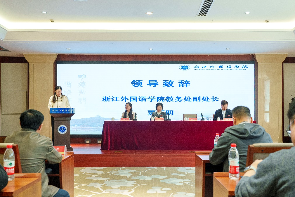 贾新明介绍了学校的基本情况,并对新同学寄予期待,她希望同学们坚守初心,坚定理想信念,树立终身学习的好习惯;处理好学习和工作的关系,立足岗位,学以致用;珍惜学习机会,勇于实践,做一个有梦想的浙外人。